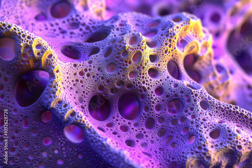 Cosmic Caves: A mesmerizing abstract image of a textured, otherworldly surface with a vibrant palette of purple and yellow, evoking a sense of wonder and discovery in the depths of space.
