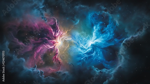 Cosmic Dance: Digital Painting of Intertwining Nebulae AI Generated