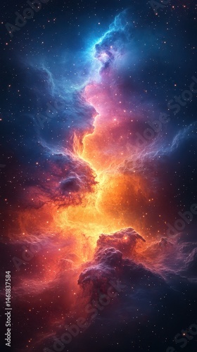 Cosmic eruption showcasing vibrant colors and swirling clouds in the depths of space
