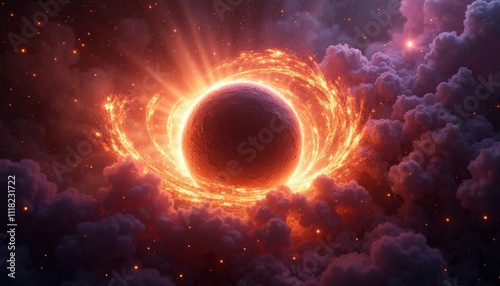 Cosmic Event with Fiery Halo Surrounding Dark Celestial Body