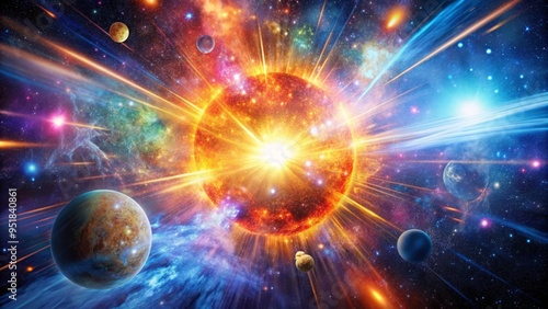Cosmic Explosion A Star's Final Symphony - Digital Painting of a Dying Star, Nebulae, and Planets, space , stars , explosion , planets