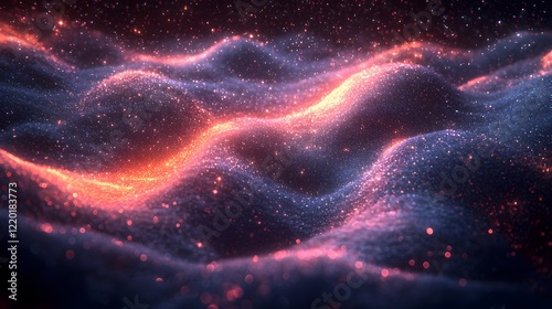 Cosmic Glitter Waves Abstract Dark Purple Pink Orange Sparkle Background