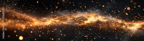 Cosmic journey through the golden galaxy space digital art nebula environment expansive view stellar exploration