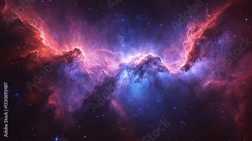 Cosmic Nebula: A Celestial Dance of Red and Blue