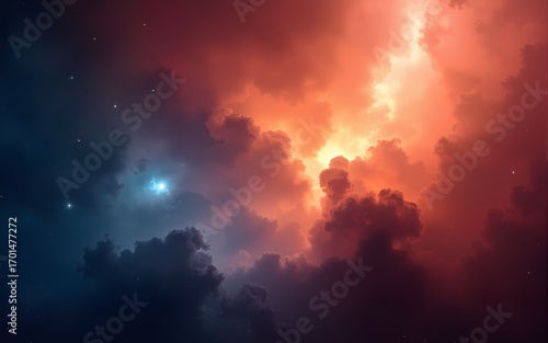 Cosmic Nebula in Vivid Red Orange Blue Hues. High quality