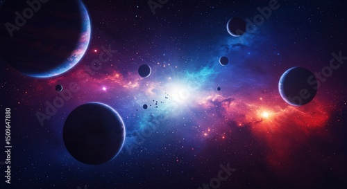 Cosmic Nebula: Planets and Stars in a Vibrant Galaxy