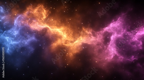 Cosmic Nebula Swirls Orange Purple Hues and Stars