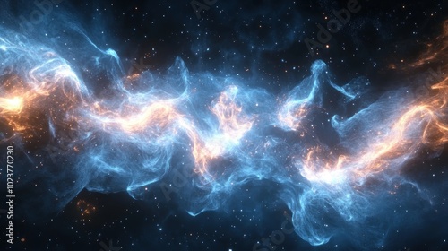 Cosmic Nebula with Blue and Orange Gaseous Swirls