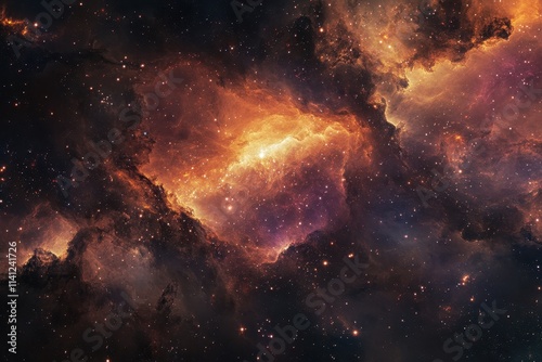 Cosmic Nebula with Orange and Red Glowing Gas Clouds