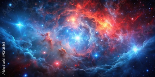 Cosmic nebula with red and blue glowing lights, space, stars, universe, galaxy, cosmos, nebula, vibrant, colorful, glow, celestial