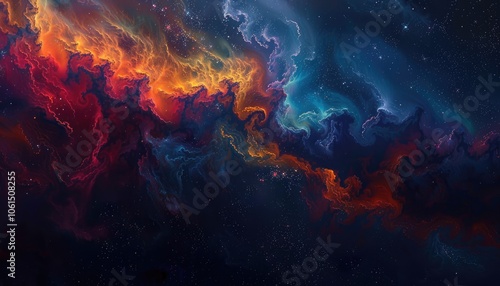 Cosmic Nebula with Red and Blue Swirling Gas Clouds