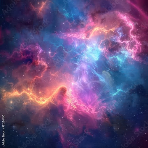 Cosmic Nebula with Swirling Colors and Glowing Stars