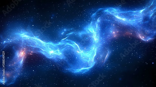 Cosmic nebula with vibrant blue energy streams flowing through starry space, featuring luminous wisps and celestial formations against dark universe background.