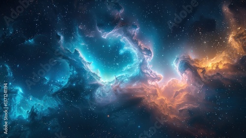 Cosmic nebulae, swirling in deep space, with stars scattered across the backdrop. Possible use Background