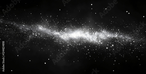 Cosmic River: A mesmerizing grayscale image depicting the Milky Way galaxy, a swirling river of stars and cosmic dust against the inky blackness of space.
