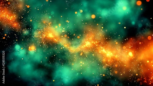 Cosmic Sparkle: A Nebula of Green, Gold, and Light