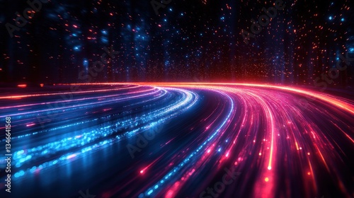 Cosmic speedway; swirling neon lights; night sky backdrop; futuristic abstract