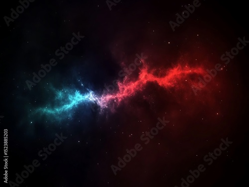 Cosmic tapestry with nebula formation in azure and crimson hues backdrop