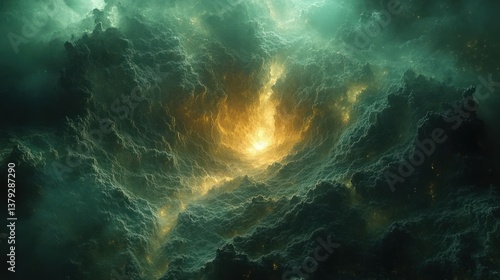 Cosmic Vortex of Green and Gold Light Abstract Digital Art Fractal Energy Flow Space Background