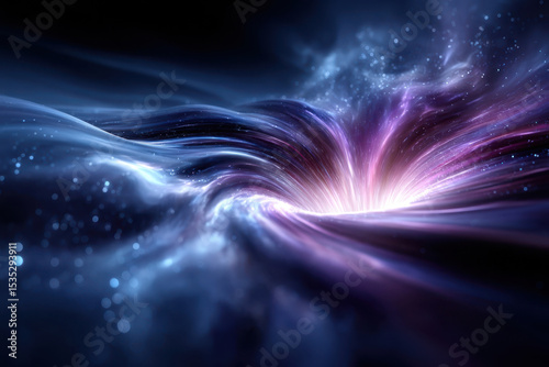 Cosmic vortex with swirling colors and bright light at the center in deep space