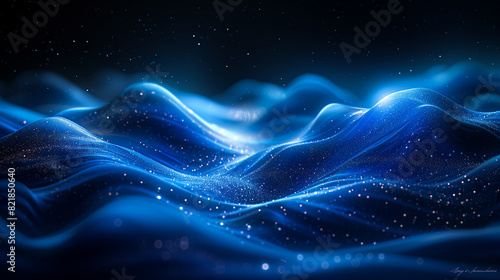 Cosmic waves in a starry expanse, flowing with the glow of a bioluminescent blue - Generative AI