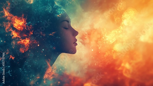 Cosmic Woman: A Surreal Portrait of Inner Fire and Celestial Harmony