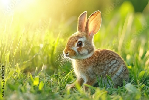Cotton Tail Rabbit. Wildlife Rabbit in Natural Habitat Closeup in Soft Light