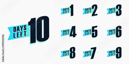 Countdown days to go banner. set of number 10-1 days left badges. countdown icon isolated with blue ribbon on white background. promotion sale offer deal timer. vector illustration