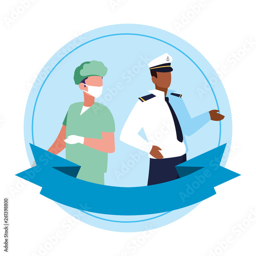 couple of professional workers with ribbon frame