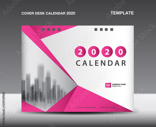 Cover calendar 2020 design, Desk Calendar Template vector, printing media creative idea design. annual report cover, Pink polygonal background concept, publication, advertisement.