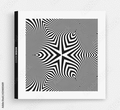 Cover design template. Black and white design. Abstract striped background. Vector illustration.