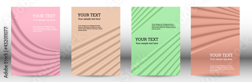 Cover designs set. Background with abstract volumetric gradient of linear waves, fabric folds for creating a trendy banner, poster