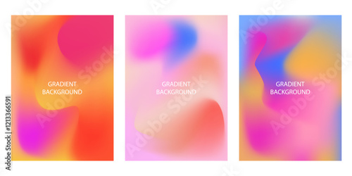 Cover gradient design set. Bright, dynamic mesh designs for posters and flyers. Vector illustration.