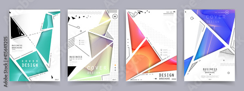 Covers templates set with graphic geometric elements. Applicable for brochures, posters, covers and banners. Vector illustrations.