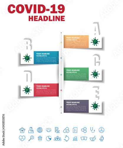 Covid-19 Coronavirus vector icon sign banner.infographic for presentation.Coronavirus outbreak in the world.