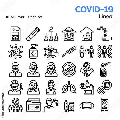 Covid-19 icon set. Lineal style