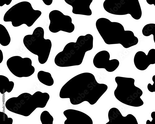 Cow black and white seamless pattern. Ideal for printing on wallpaper, fabric, packaging. Abstract vector spots.