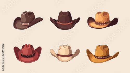 Cowboy Hat - Iconic Western Headgear. Game Assets. Multiple Vector Icon Illustration. Icon Concept Isolated Premium Vector.