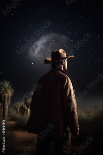 Cowboy star gazing at night sky, created using generative ai technology