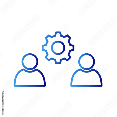 Coworker meeting icon with blue gradient outline style. room, symbol, company, coworkers, corporate, presentation, remote. Vector Illustration