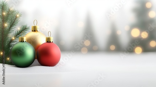 Cozy and Festive Christmas Illustration with Ornaments, Pine Branches, and Soft Snowfall in a Winter Wonderland Scene