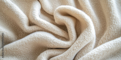 Cozy beige fabric with a gentle pile, carefully folded to showcase its warm, neutral tones and soft texture, ideal for a minimalistic background or textile use