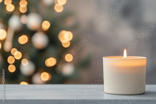 Cozy candle glowing softly while warm lights create a festive atmosphere indoors