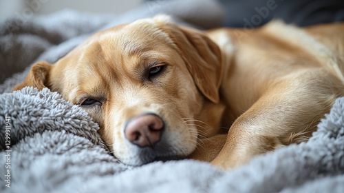 Cozy Dog Relaxing on Soft Blanket in Warm Indoor Setting