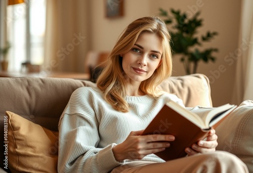 Cozy female homebody in a warm living room