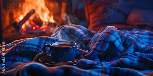 Cozy Flannel and Hot Cocoa Winter Gathering by the Fireplace for Warmth, Relaxation, or Holiday Vibes