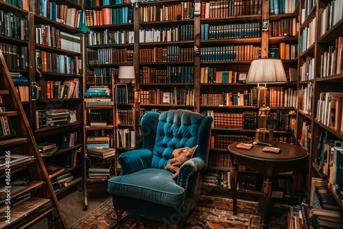 Cozy Home Library with Comfortable Reading Chair and Well-Organized Bookshelves - Ideal for Relaxation