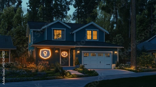 Cozy House with Illuminated Key Symbols at Night