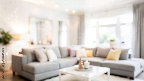 Cozy Living Room Blur - A blurred background of a comfortable living room with sofas and soft lighting.