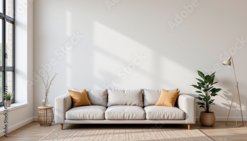 Cozy living room setup with modern sofa home interior decor natural light minimalist style